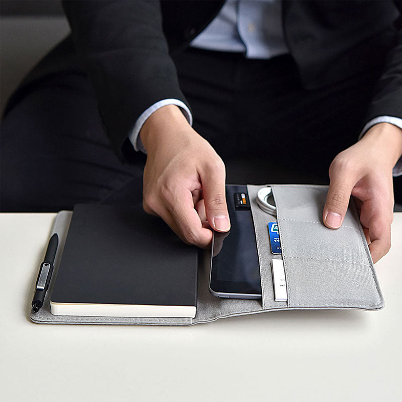 Este cuaderno A5 viene presentado en un elegante sobre con diseño en gris y negro. La cubierta de PU y el papel Daolin de 80g lo hacen ideal para escribir con el bolígrafo de alta calidad MIDOT y sus recambios de 0.5mm. Con un estándar ejecutivo de calidad, es la opción perfecta para aquellos que buscan sofisticación y exclusividad en sus productos de papelería.